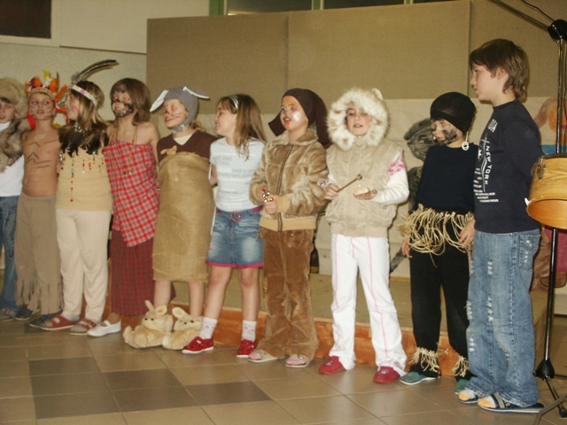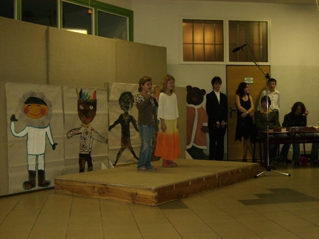 Vybrali jsme si krásnou písničku od Jaroslava Uhlíře a Zdeňka Svěráka " Světové Vánoce". Alespoň na chvíli se z nás stali Eskymáci, Australani, černoši i indiáni. Moc se nám povedla, ale za to vděčíme především jejim autorům.