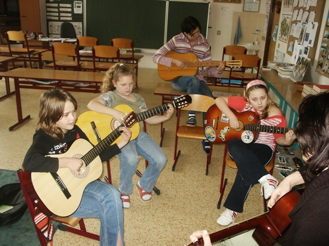 "Kytarový kvintet" pod vedením paní učitelky...