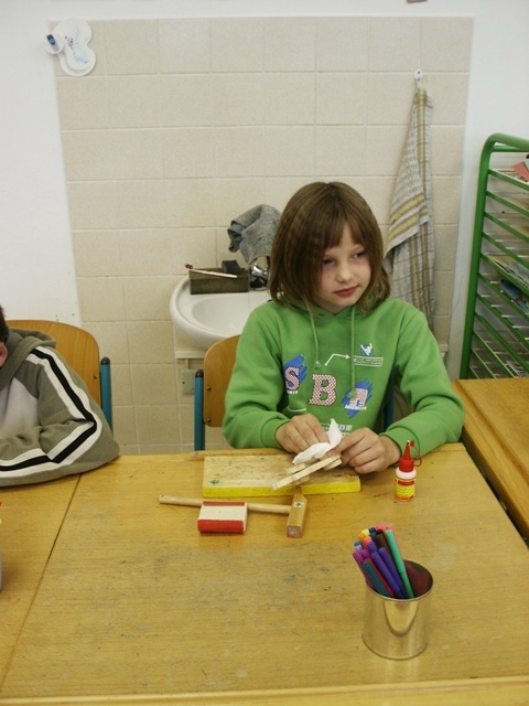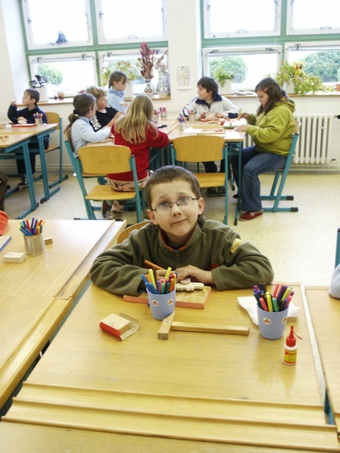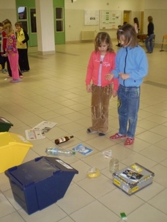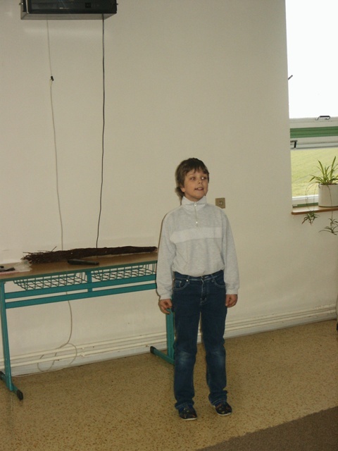 První, co se za ten den stalo, bylo to, že jsme seděli v kroužku a povídali si. Potom jsem šli s první a druhou třídou ven na hřiště. Sešlapávali jsme lahve. Potom jsme šli na soutěž na hale. A pak jsme stavěli z víček od PET lahví zeměkouli. Potom jsme pohřbívali odpadky. Byl to nejhezčí Den Země.