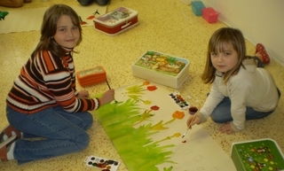 Vytváření mozaiky zeměkoule z víček od PET lahví.