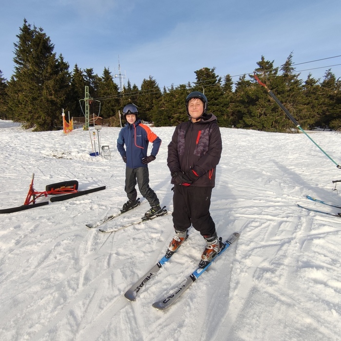 Dnes žáci potrénovali základní dovednosti - chůze v lyžákách, obutí a sundání lyží, základní lyžařský postoj a jízda a zastavení v oboustranném přívratu lyží. Pobavili jsme se při závodech v běhu v lyžákách nebo jízdě na "lyžoběžce". Poté byli žáci rozděleni do lyžařský skupin."
