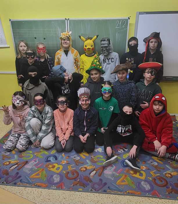 Čtvrtá třída se proměnila v rej barevných masek! V rámci dalšího tematického pátku si žáci přinesli své karnevalové kostýmy a užili si den plný zábavy a kreativity. Děti si s nadšením představovaly své masky a vzájemně se obdivovaly.